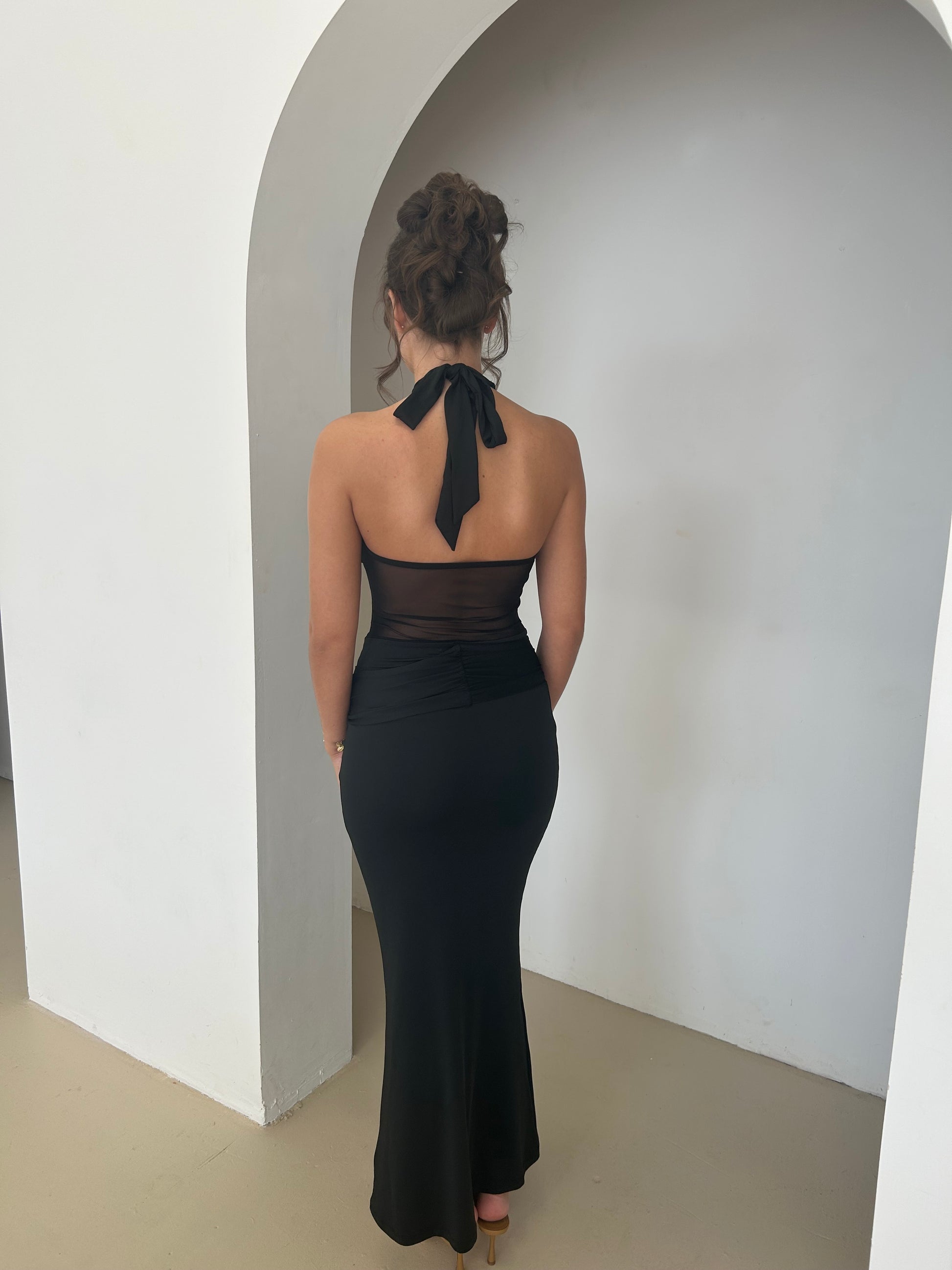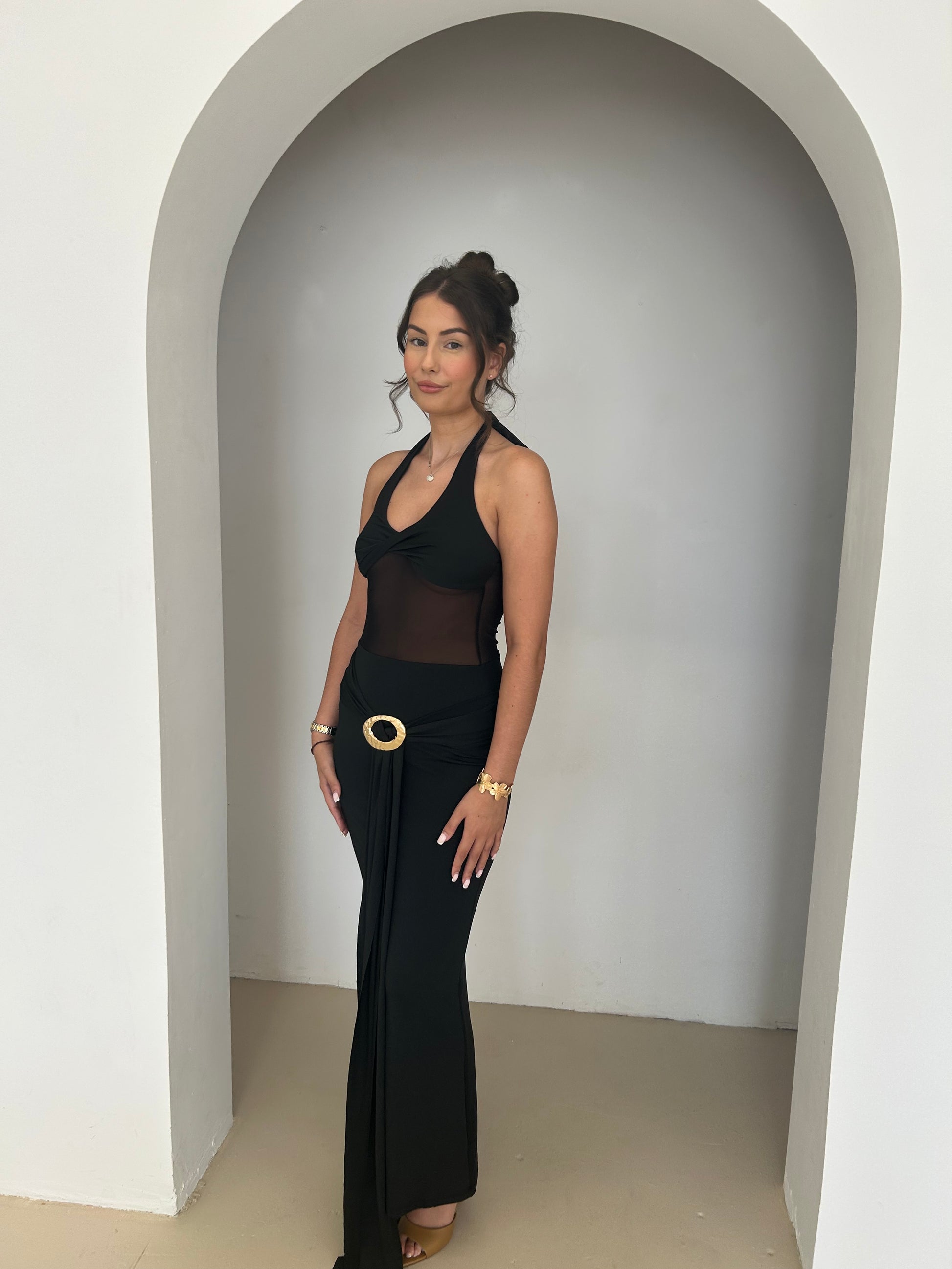 Margo maxi dress is your next statement piece. Featuring a tie halter neck, backless detailing and wrap around feature.